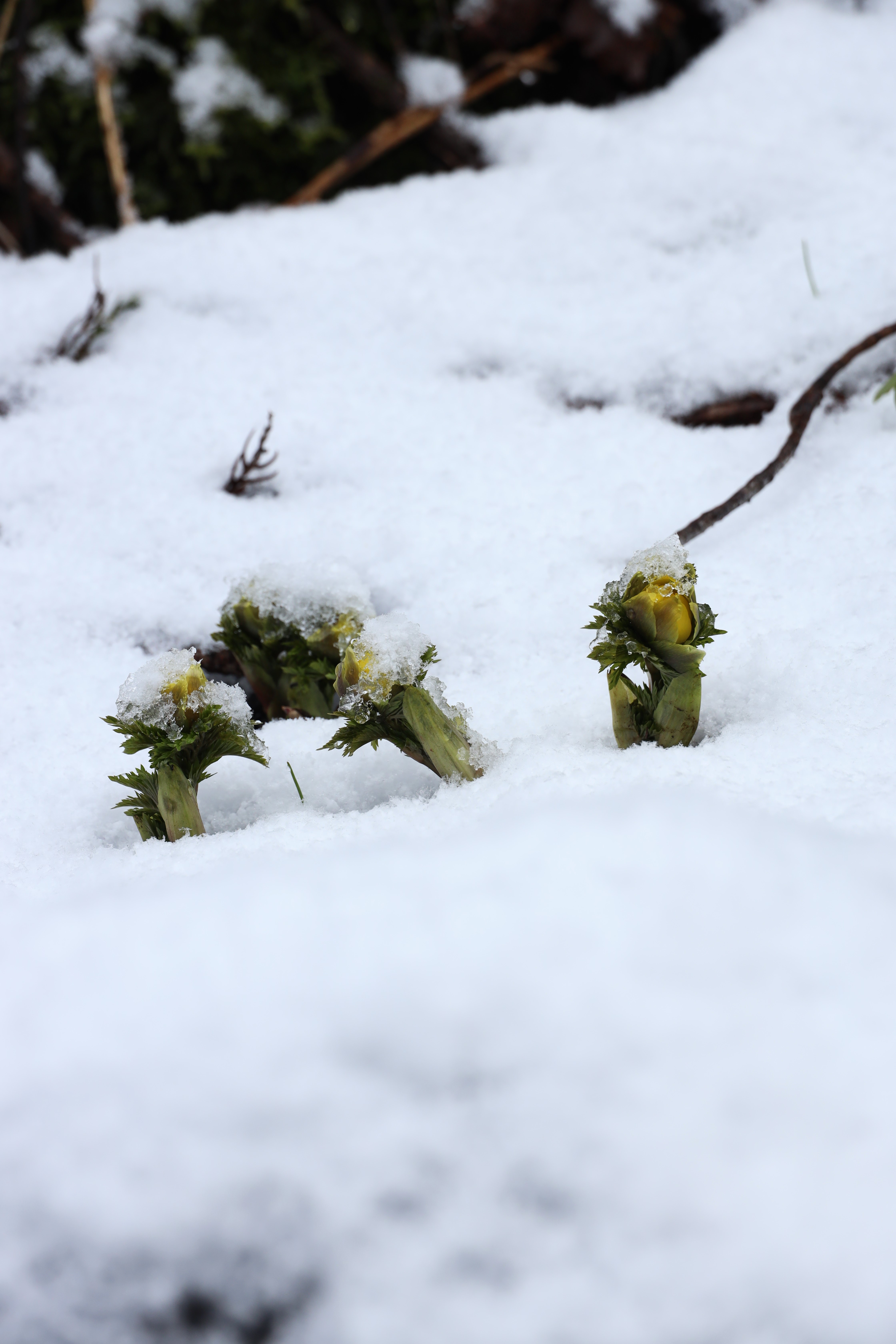 雪の中の福寿草・・・すでに雪解けし撮影は出来ませんでした。
