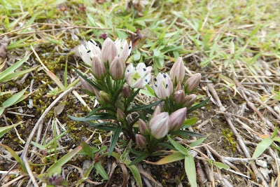 金北縦走路入口を9時15分登山開始。マトネ、石花越分岐点と快調に進む。途中、秋の花たちが迎えてくれる。(ノコンギク、ミヤマコゴメグサ、エゾリンドウ、アキノキリンソウ、ネジバナ、サラシナショウマ、アケボノソウ、ダイモンジソウなど)
