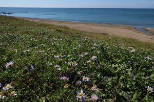 海岸の砂地に咲くハマベノギク(浜辺野菊)です。