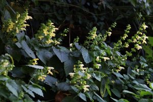 一ヵ月前に咲き始めをご紹介したキバナアキギリ(黄花秋桐)です。