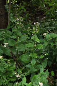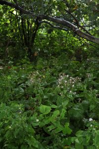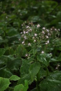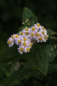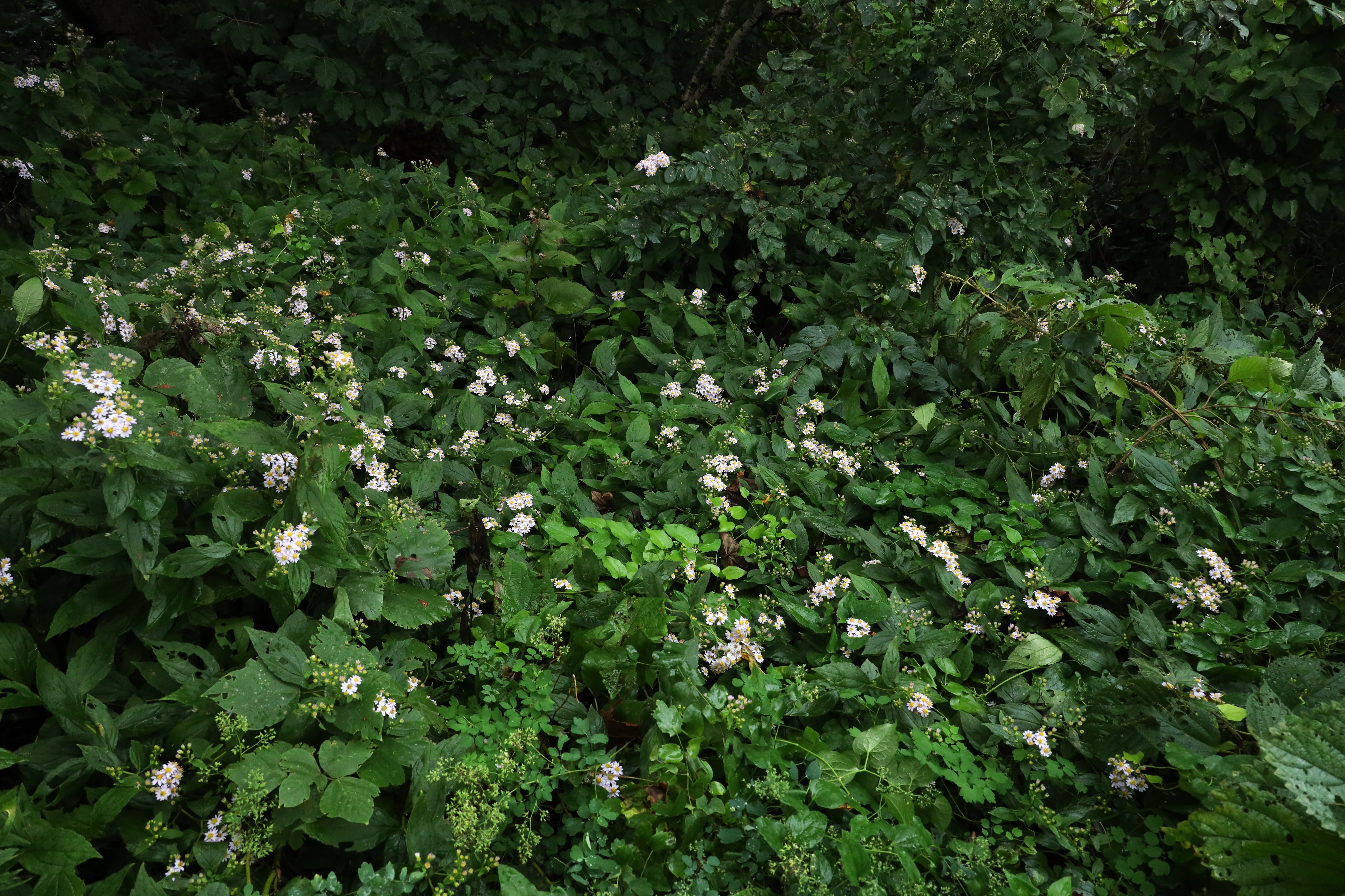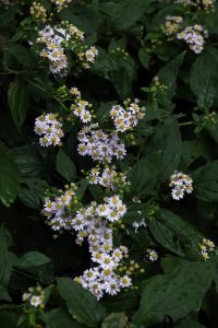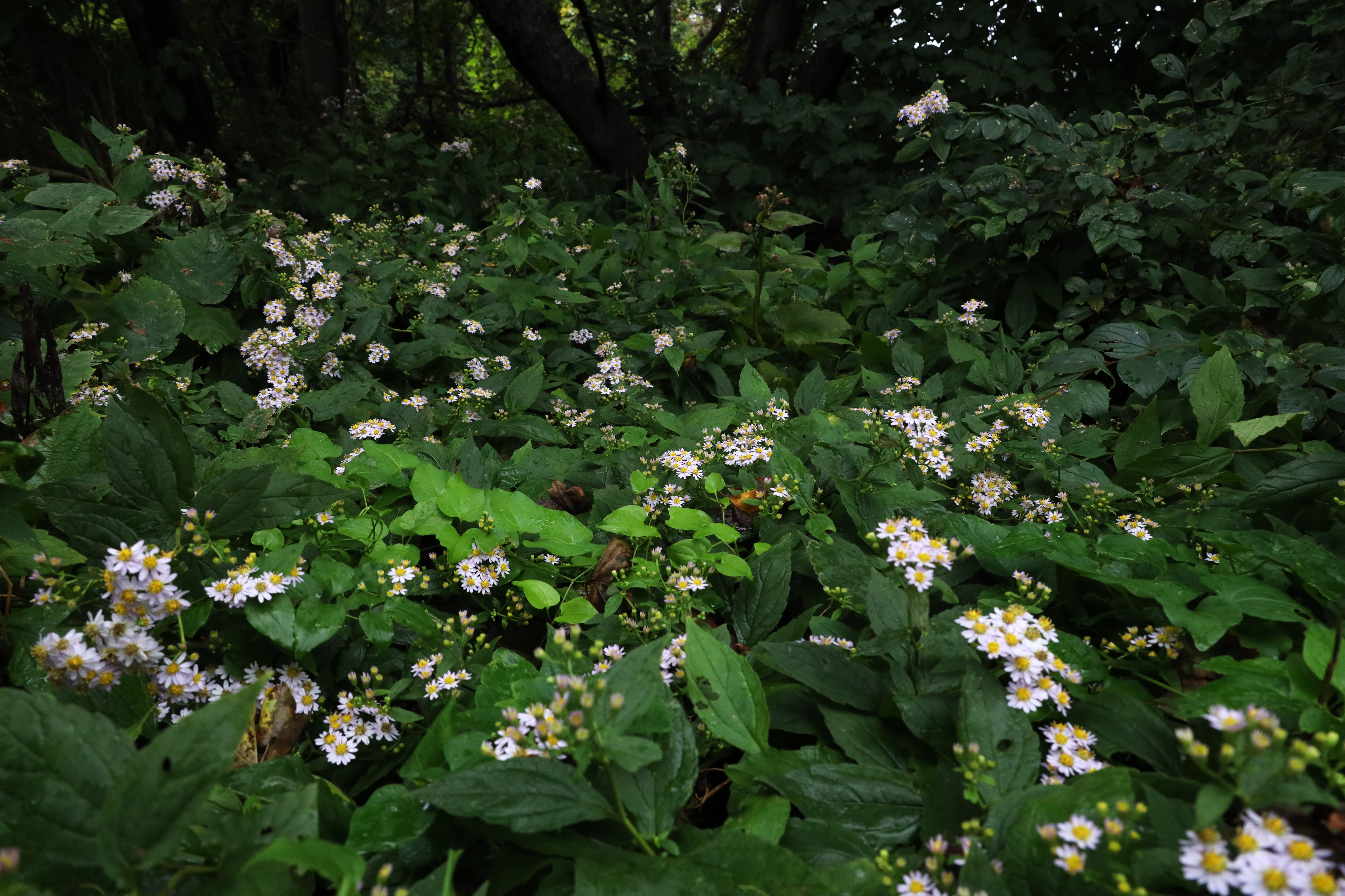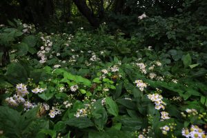 日影に群生するタマバシロヨメナ(珠葉白嫁菜)です。