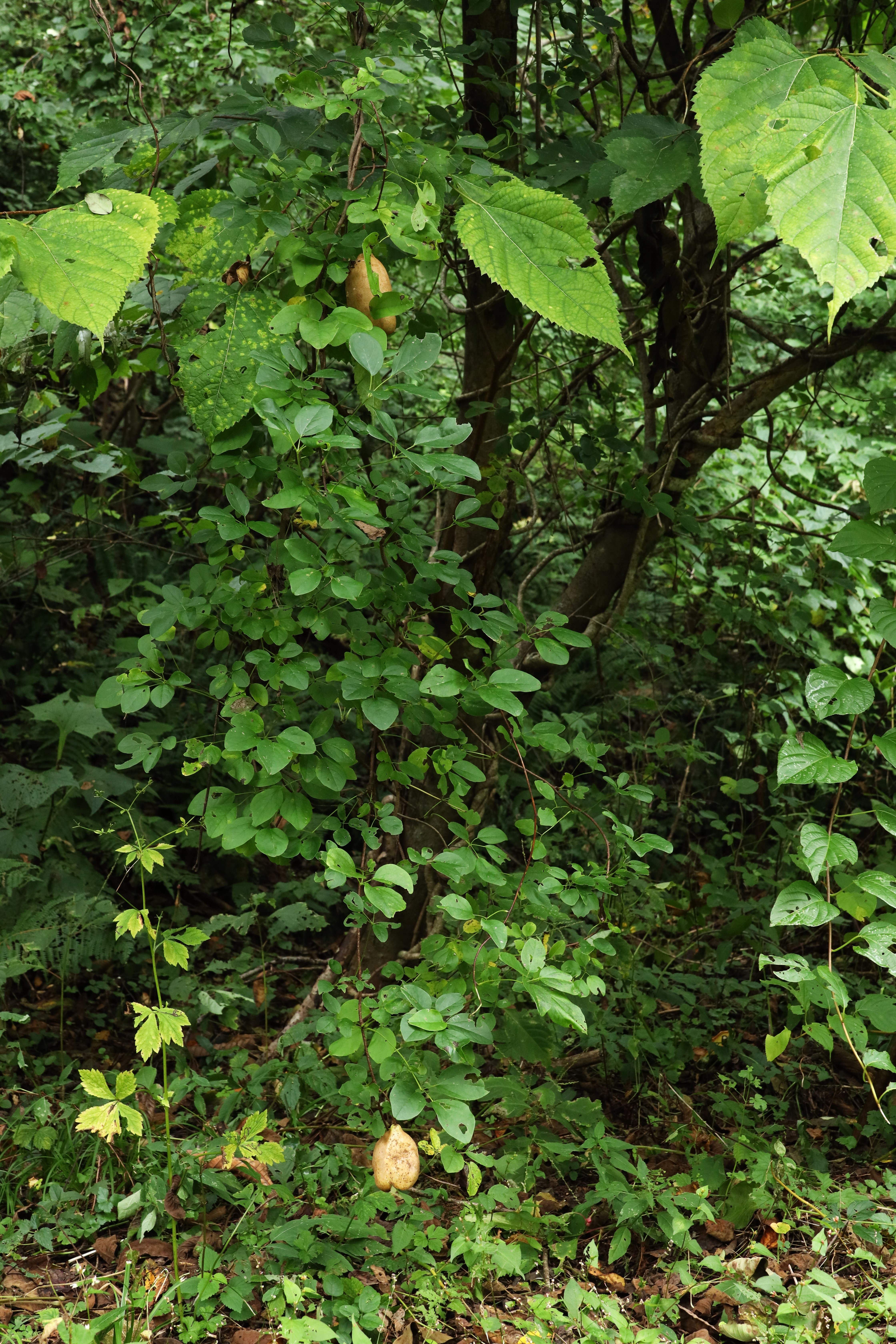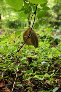撮影の帰り道、登山口周辺で垂れ下がるアケビに出逢いました。