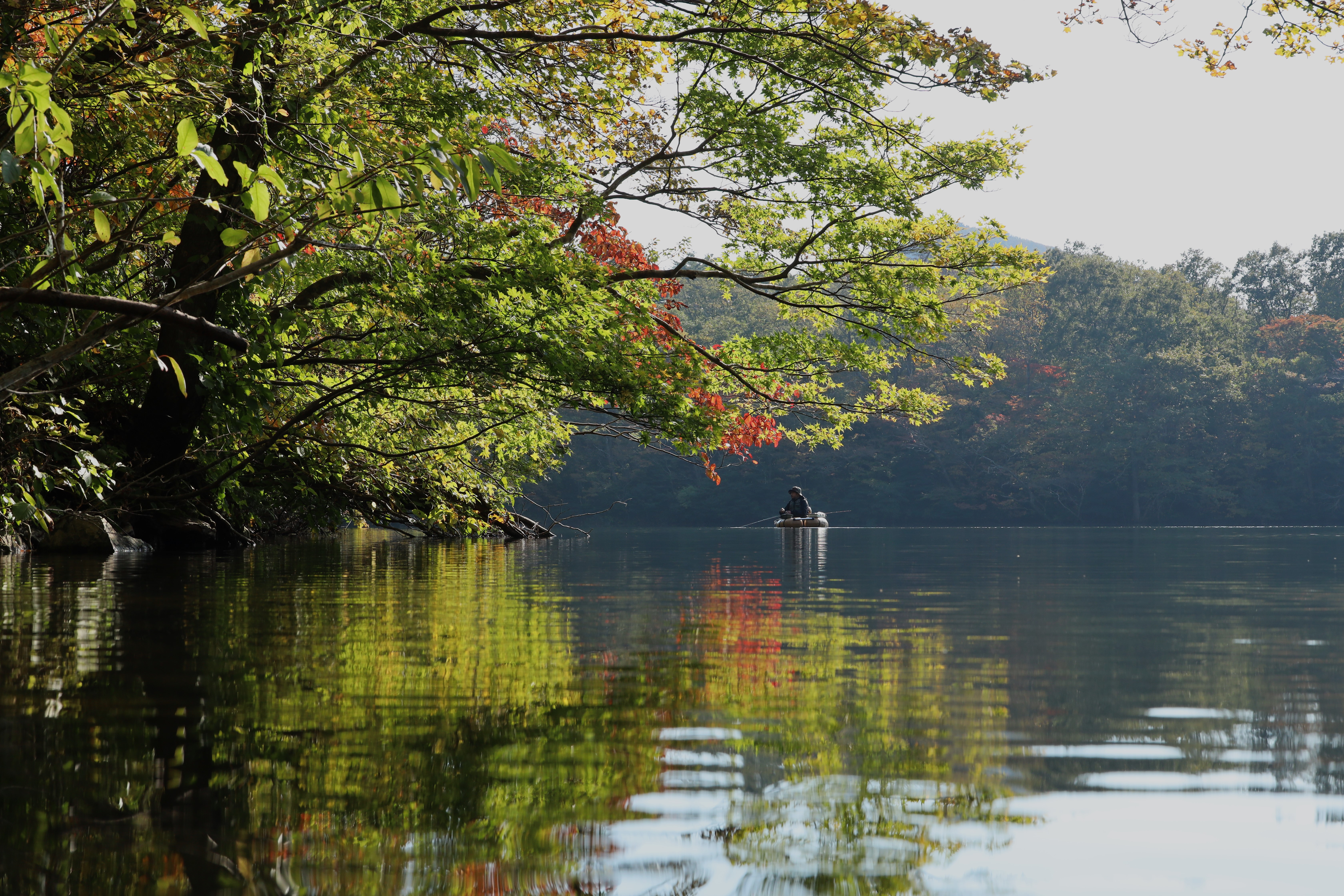 大蛇と村の美しい娘、お仙の悲しい恋の伝説がある池にゴムボートで釣り・・・