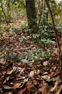 落葉した明るい林床にたくさん見られます。