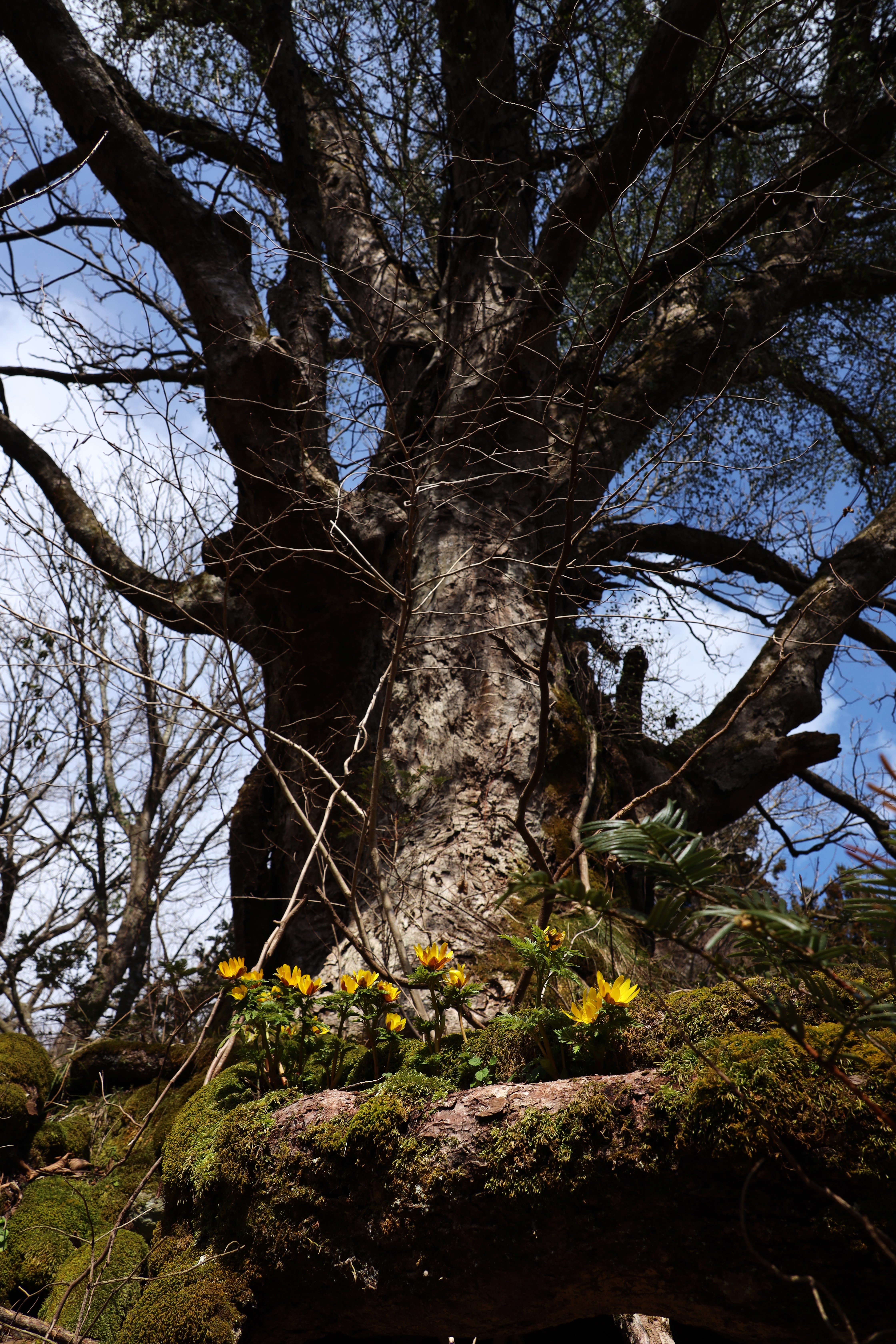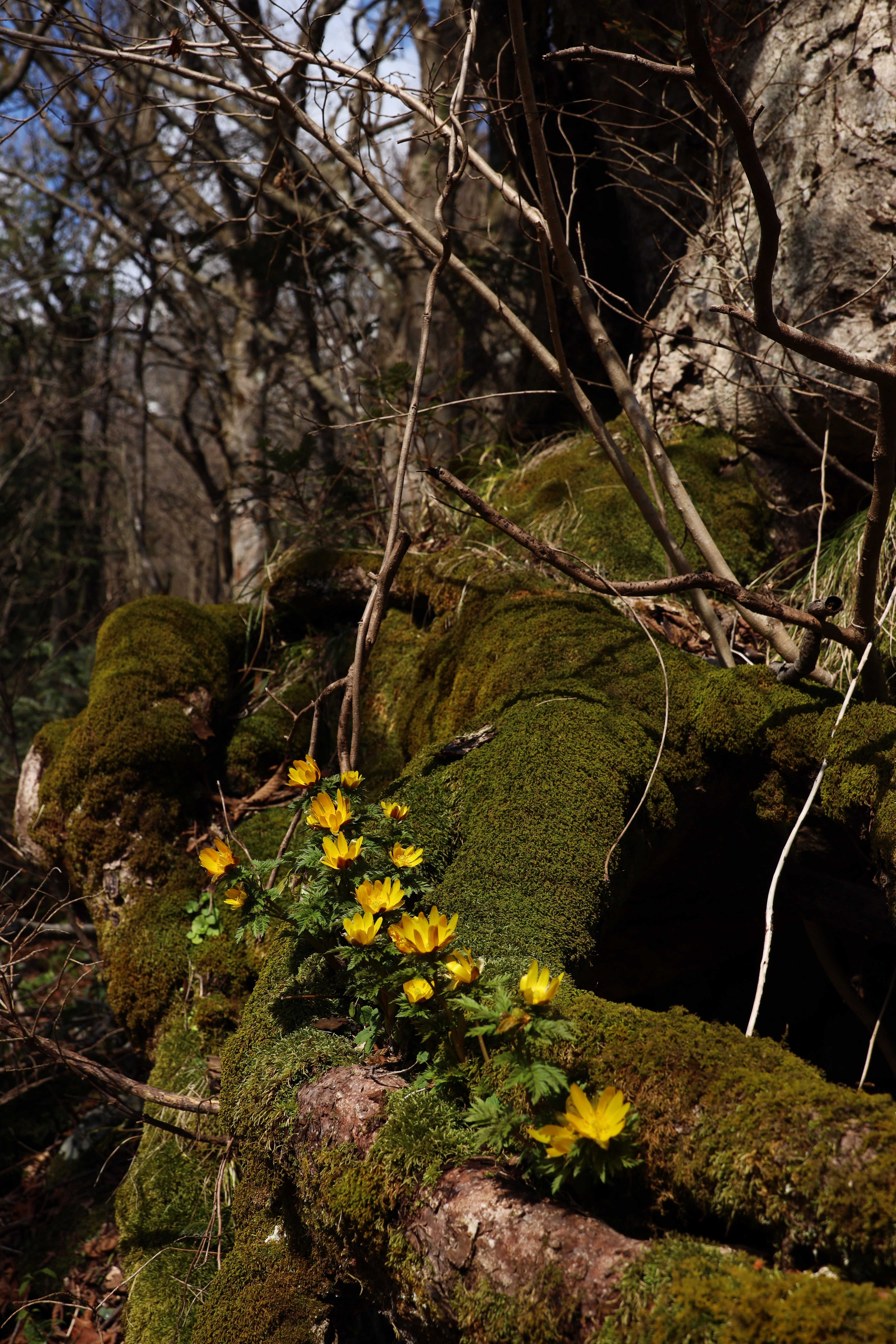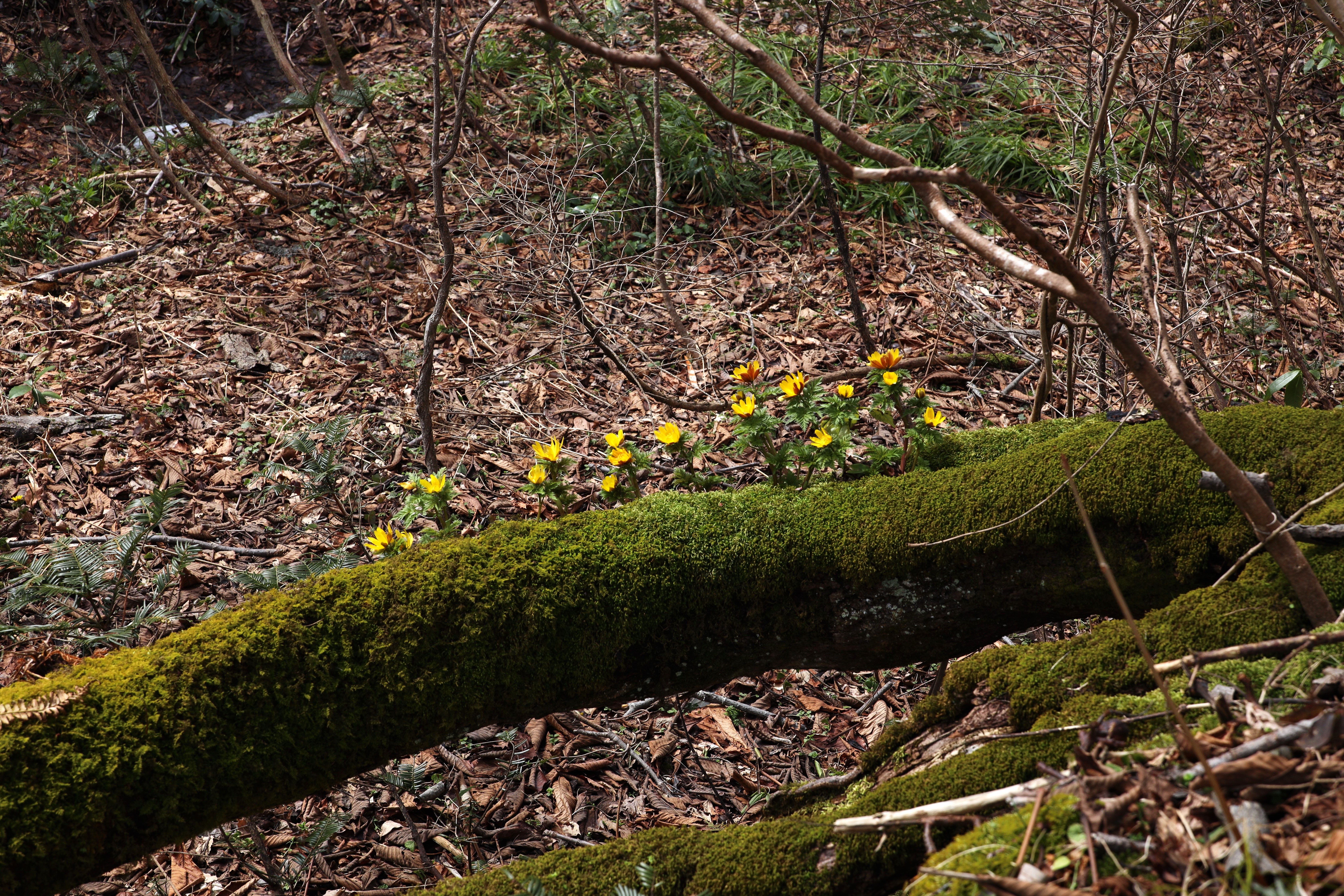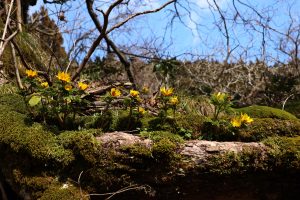 しかし、今日は面白い場所に生える福寿草に出会いました。
