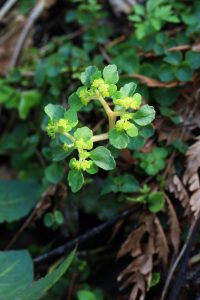ヤマネコノメソウは、茎葉が互生し長毛が散生します。
