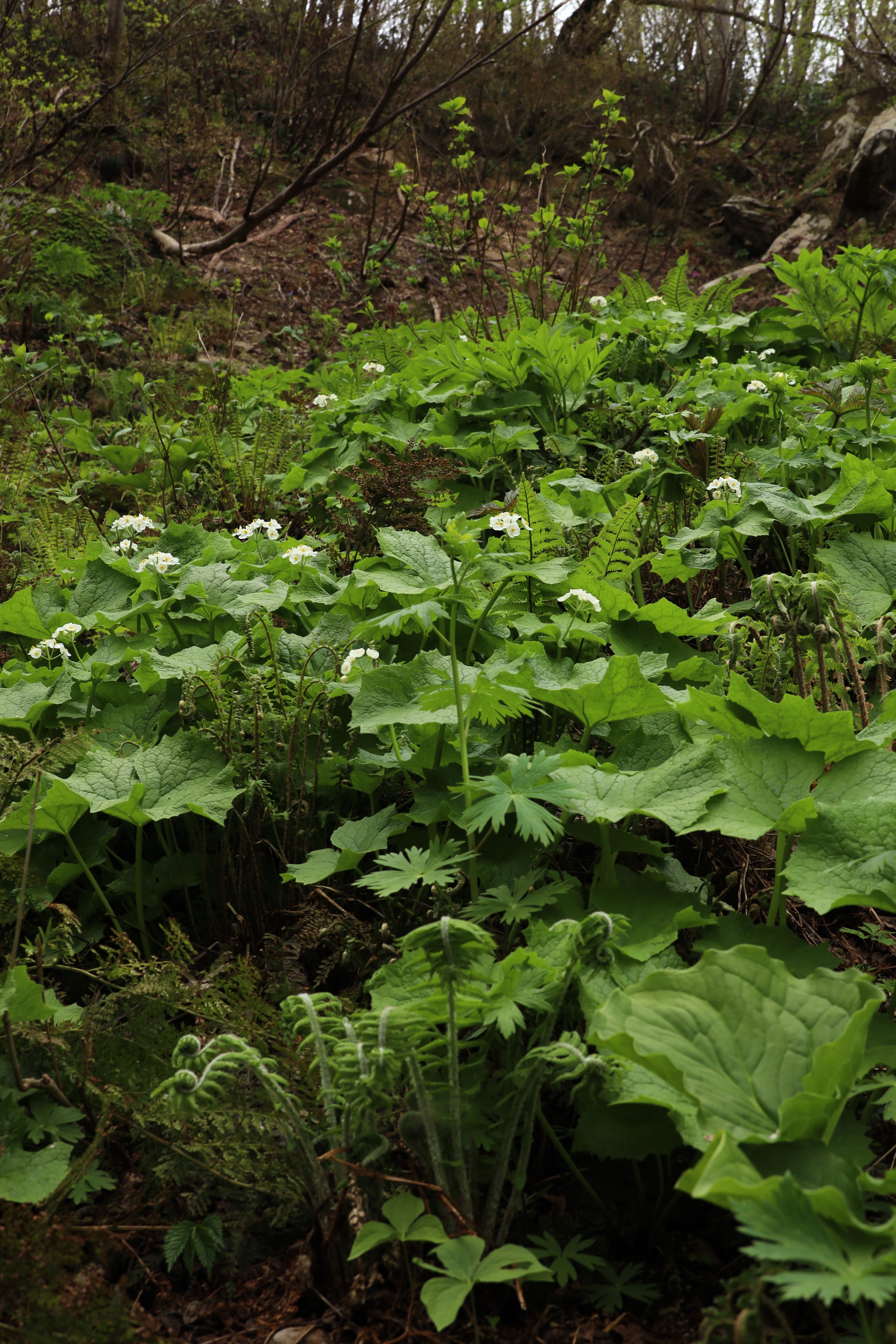 人気のサンカヨウも咲き始めました。